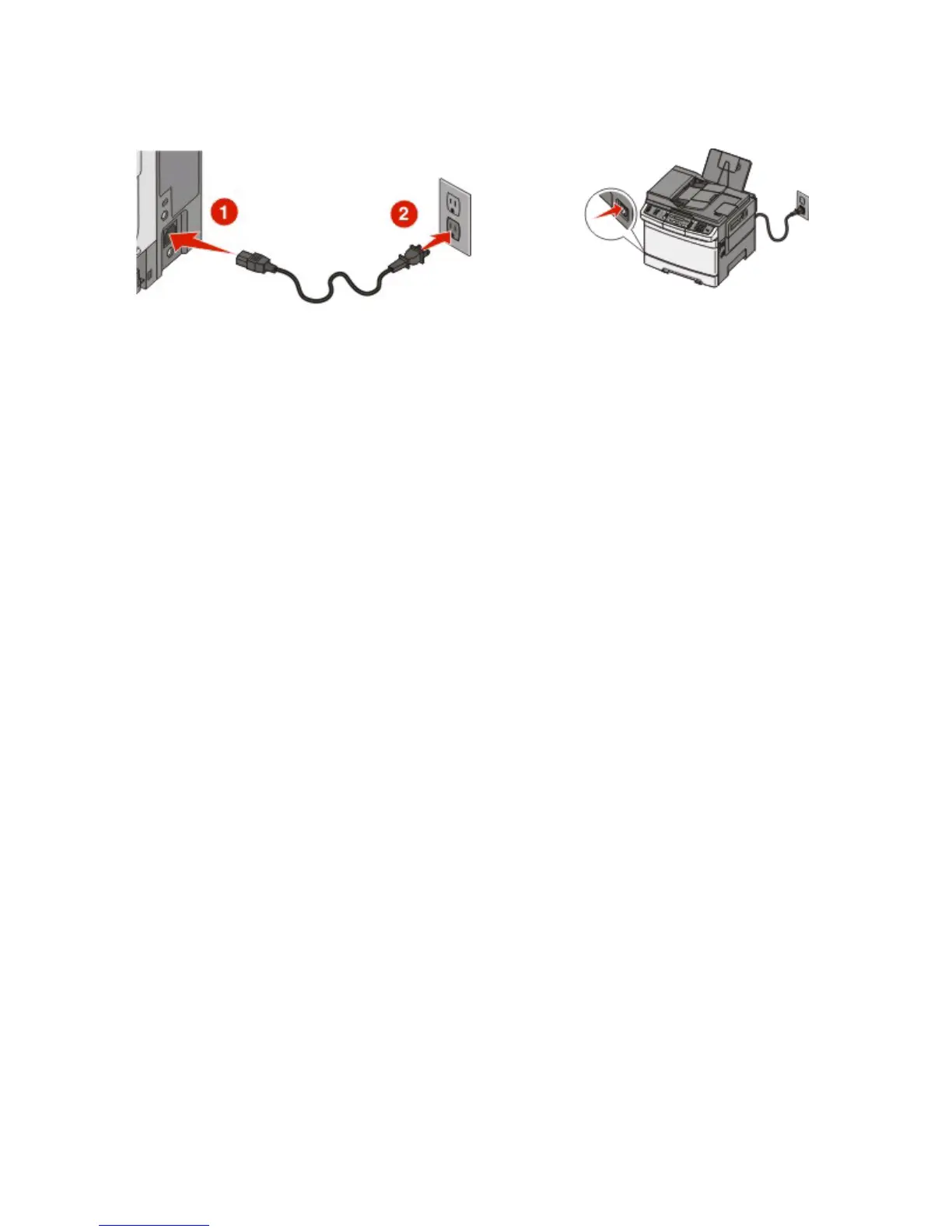 8 Connect the power cable to the printer and then to a properly grounded electrical outlet, and then turn the printer
