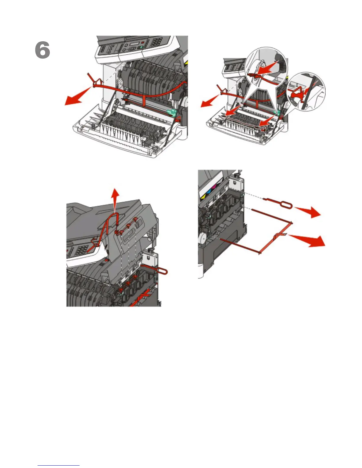 Remove all red packing material as shown.