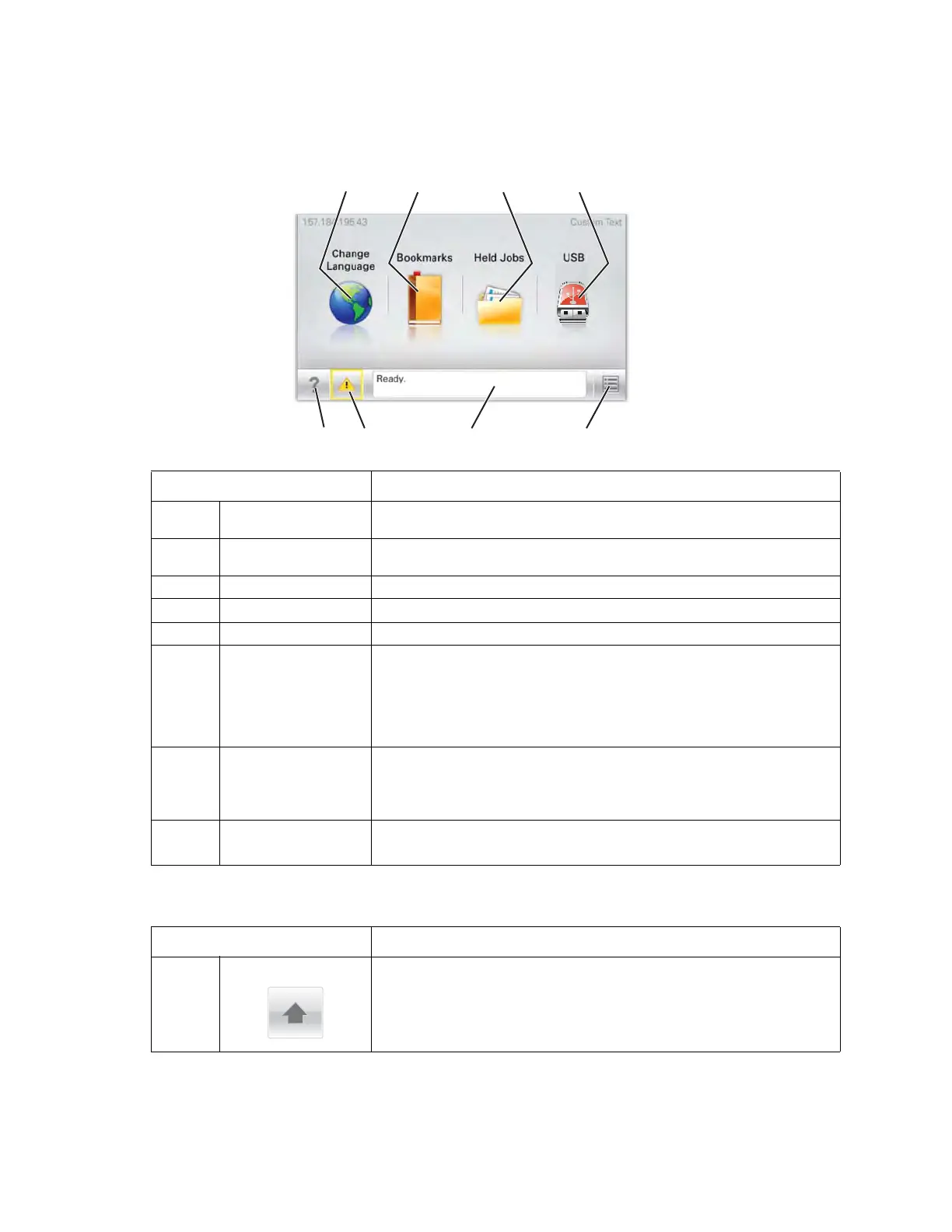 6 Status message bar Shows the current printer status such as Ready or Busy