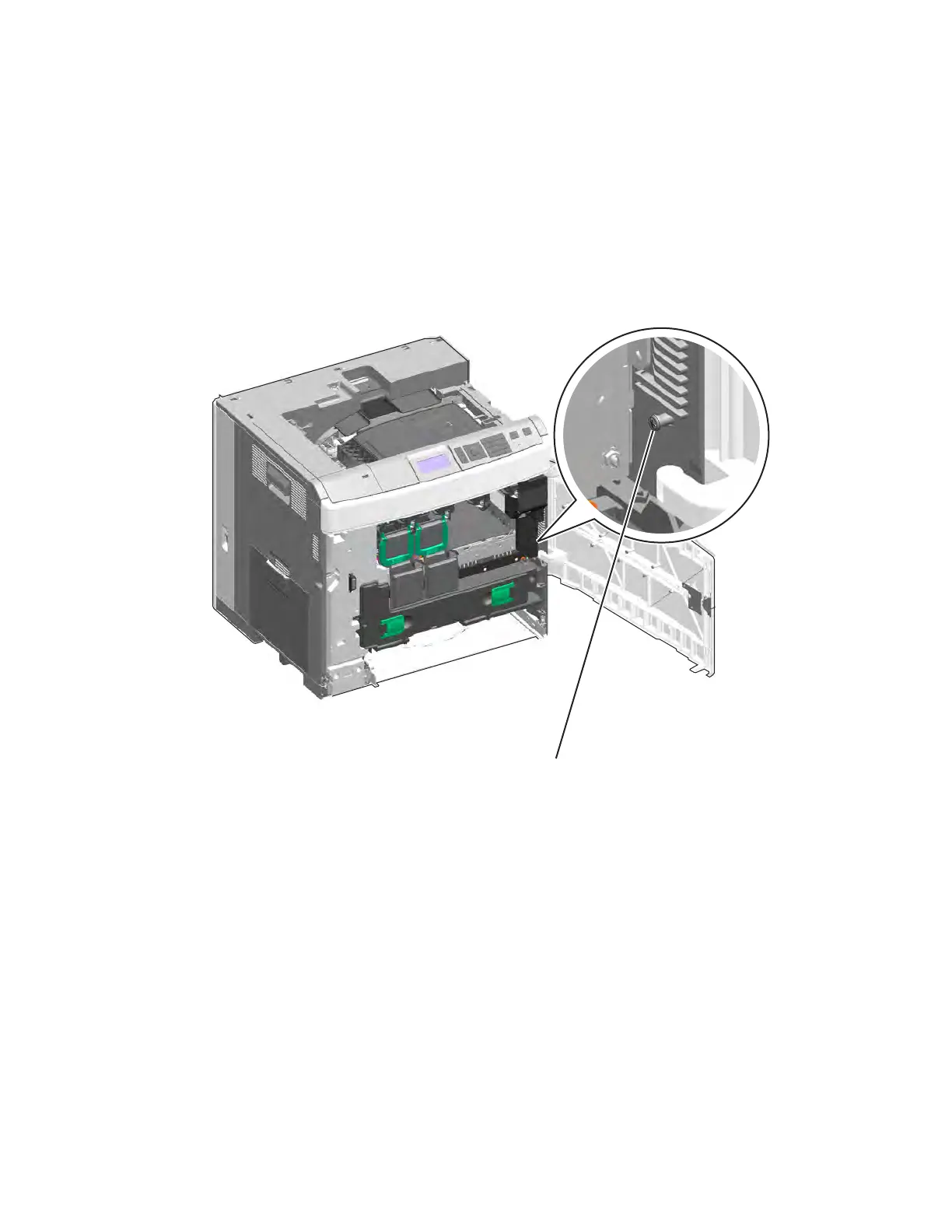 4. Open the front access door, and remove the black and magenta cartridges.