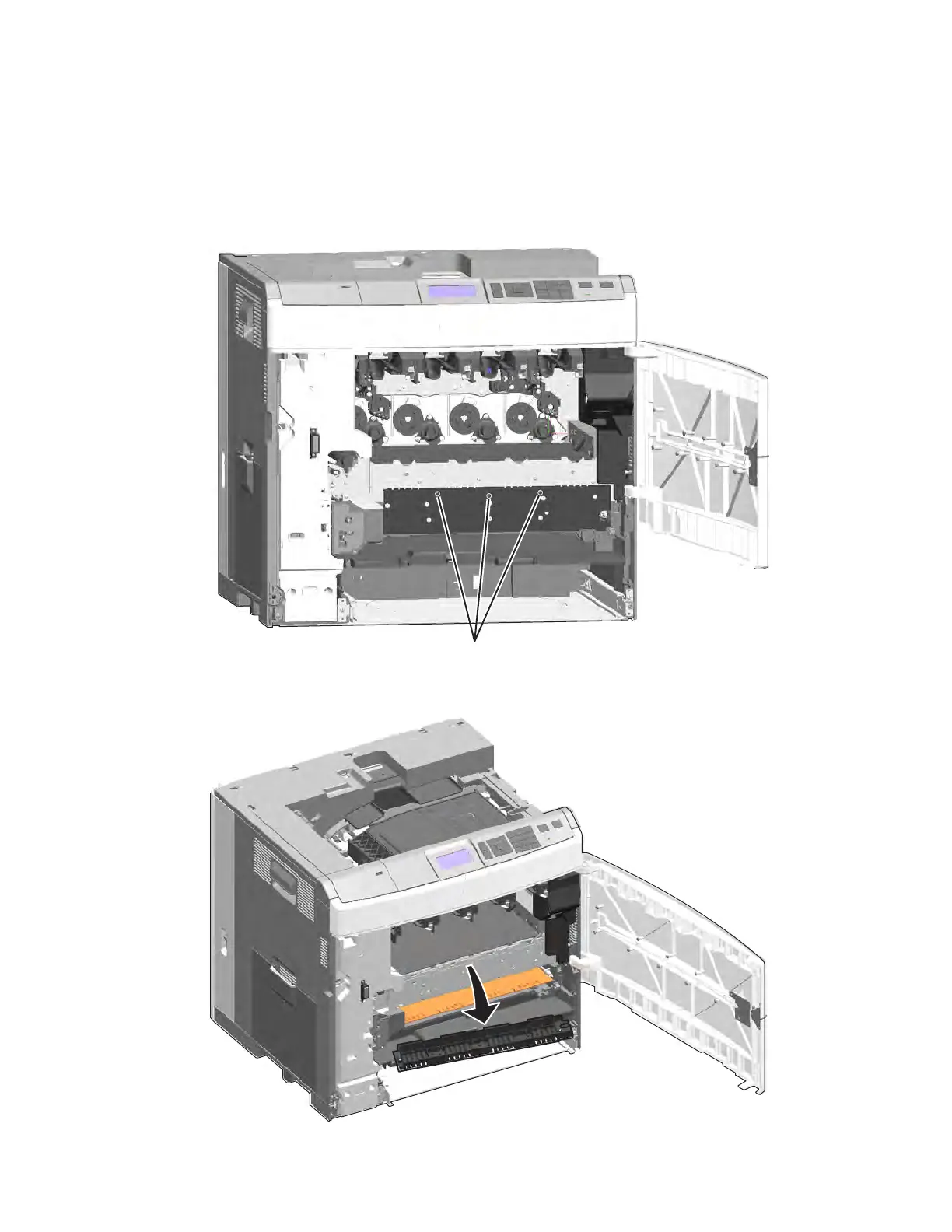 1. Remove the waste toner container. See “Waste toner container removal” on page 4-147.