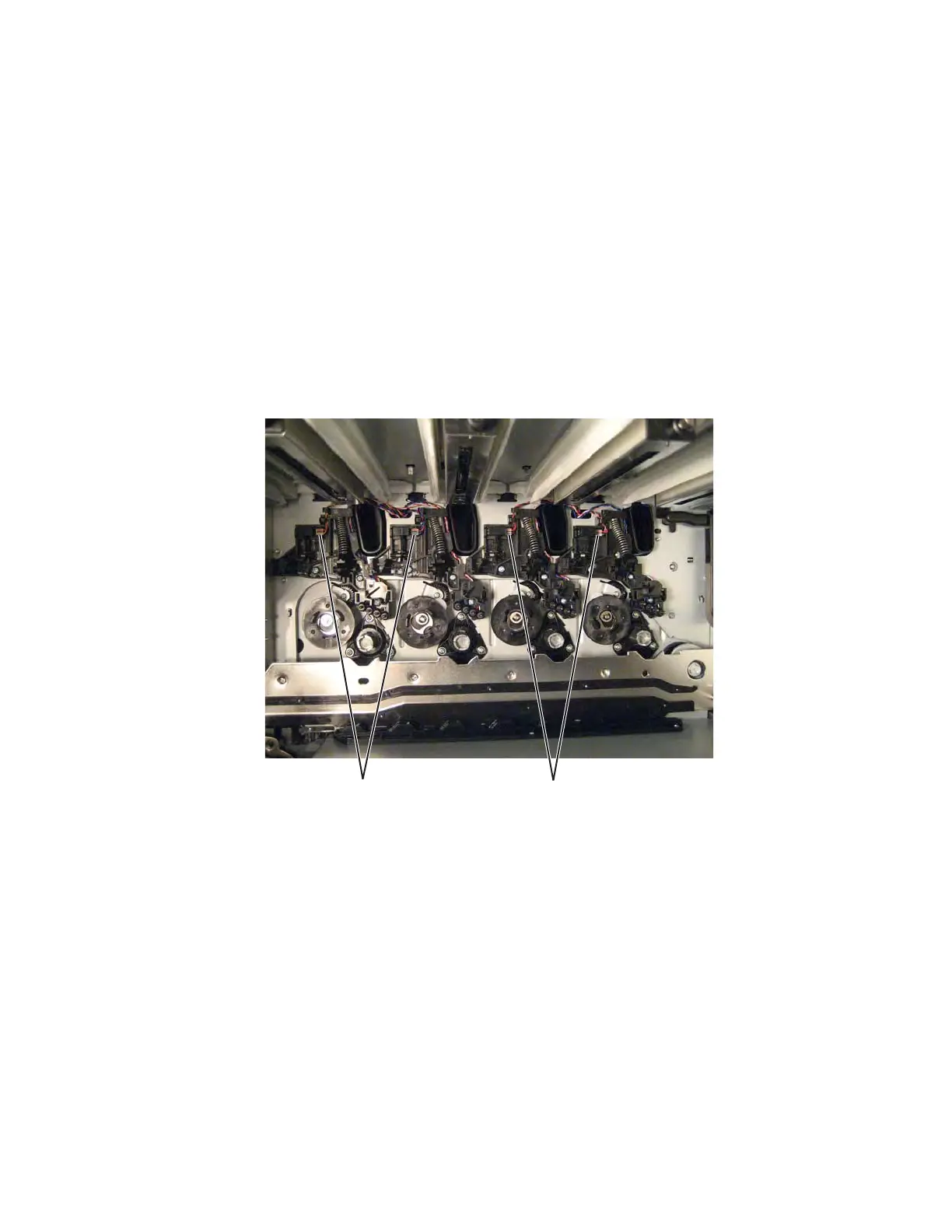 each string inside the printer and the other end on the system board.