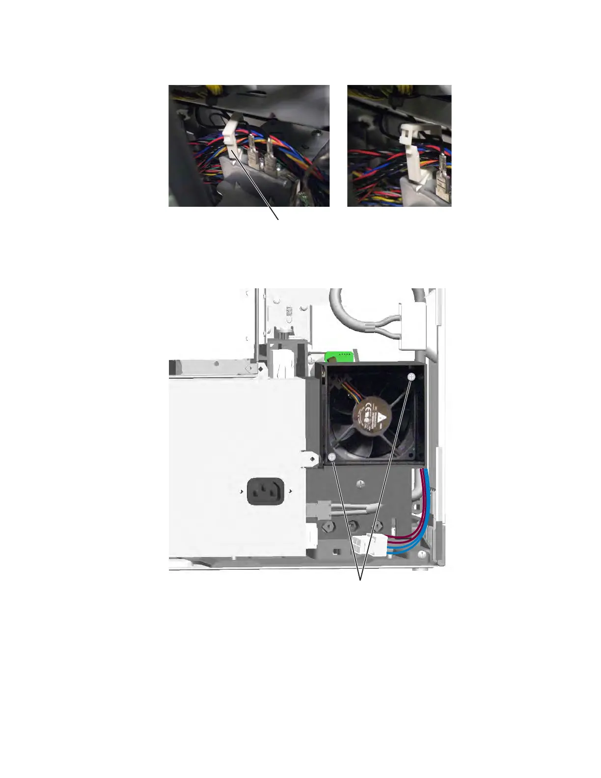 4. Feed the cable through the slot in the system board cage and the clip.