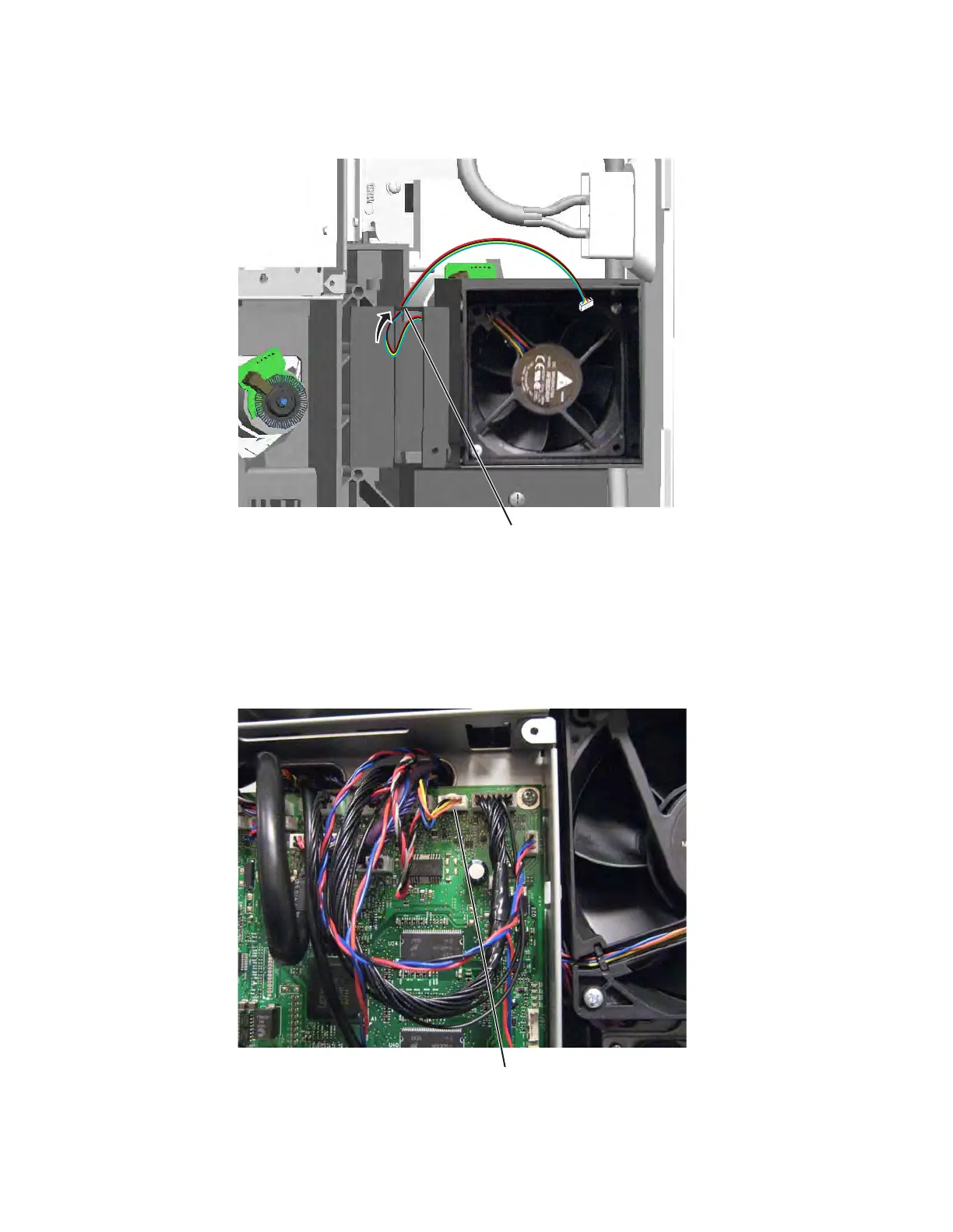6. Feed the cable through the slot in the fan housing (D) as you remove the fan.