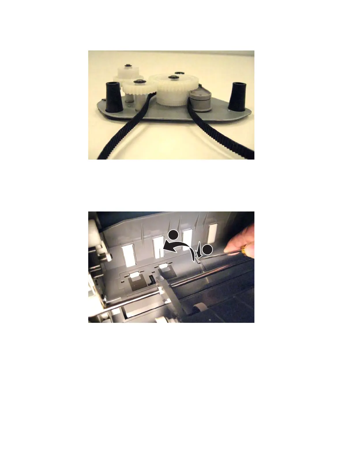 Installation note: When reinstalling the belt, be sure the belt sits on the teeth at the base of the gear.