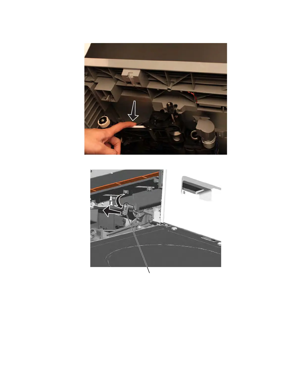 4. Rotate the release lever (B), pull it toward you, and then lower the assembly to remove it from the printer.