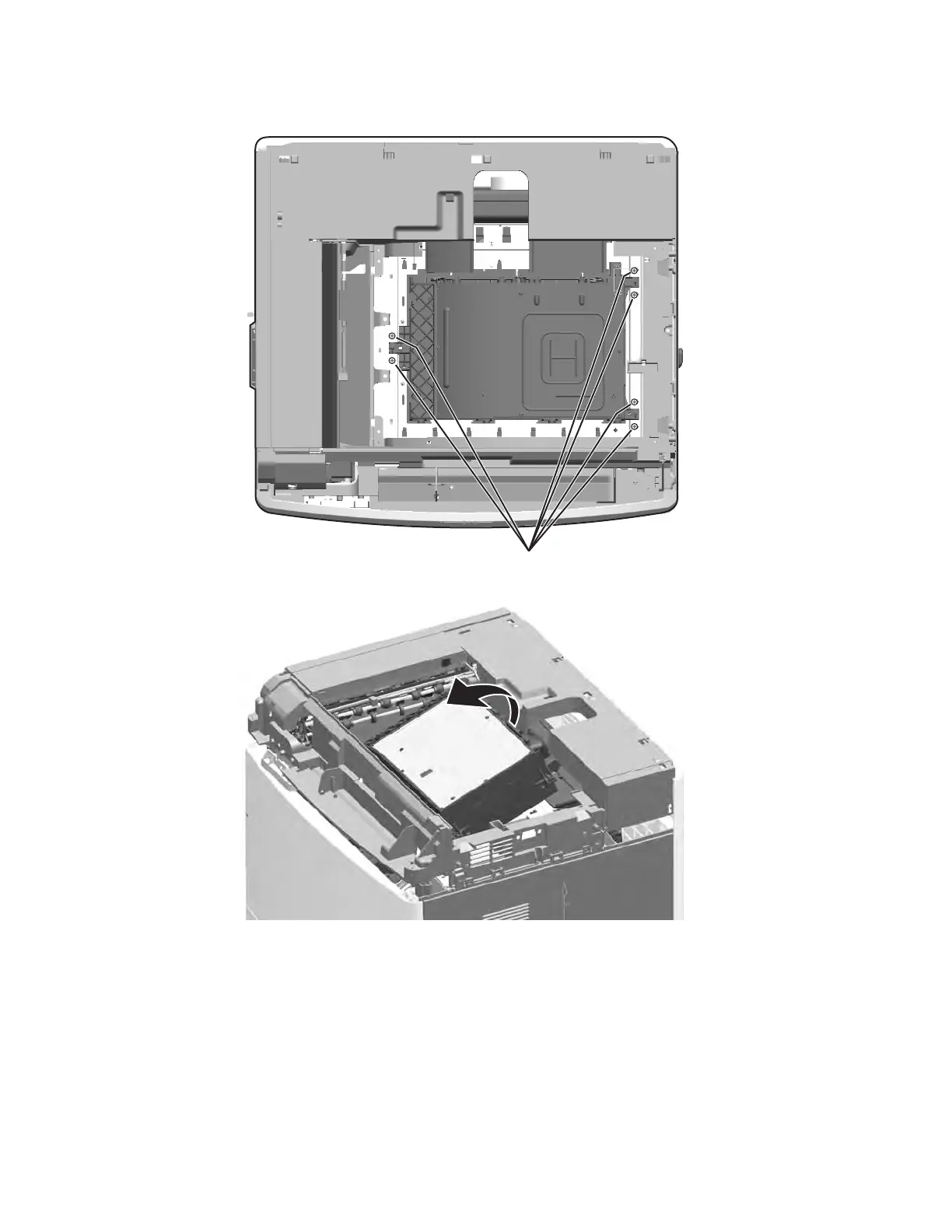 4. Remove the six screws (B) from the brackets, and remove the brackets.