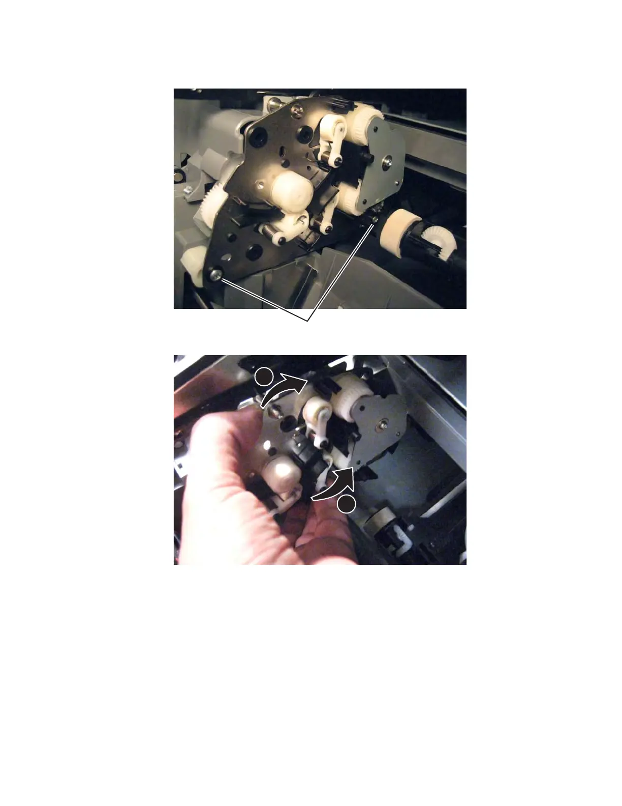 11. Lift the bottom of the staging assembly and then rock it back to free it from the frame.