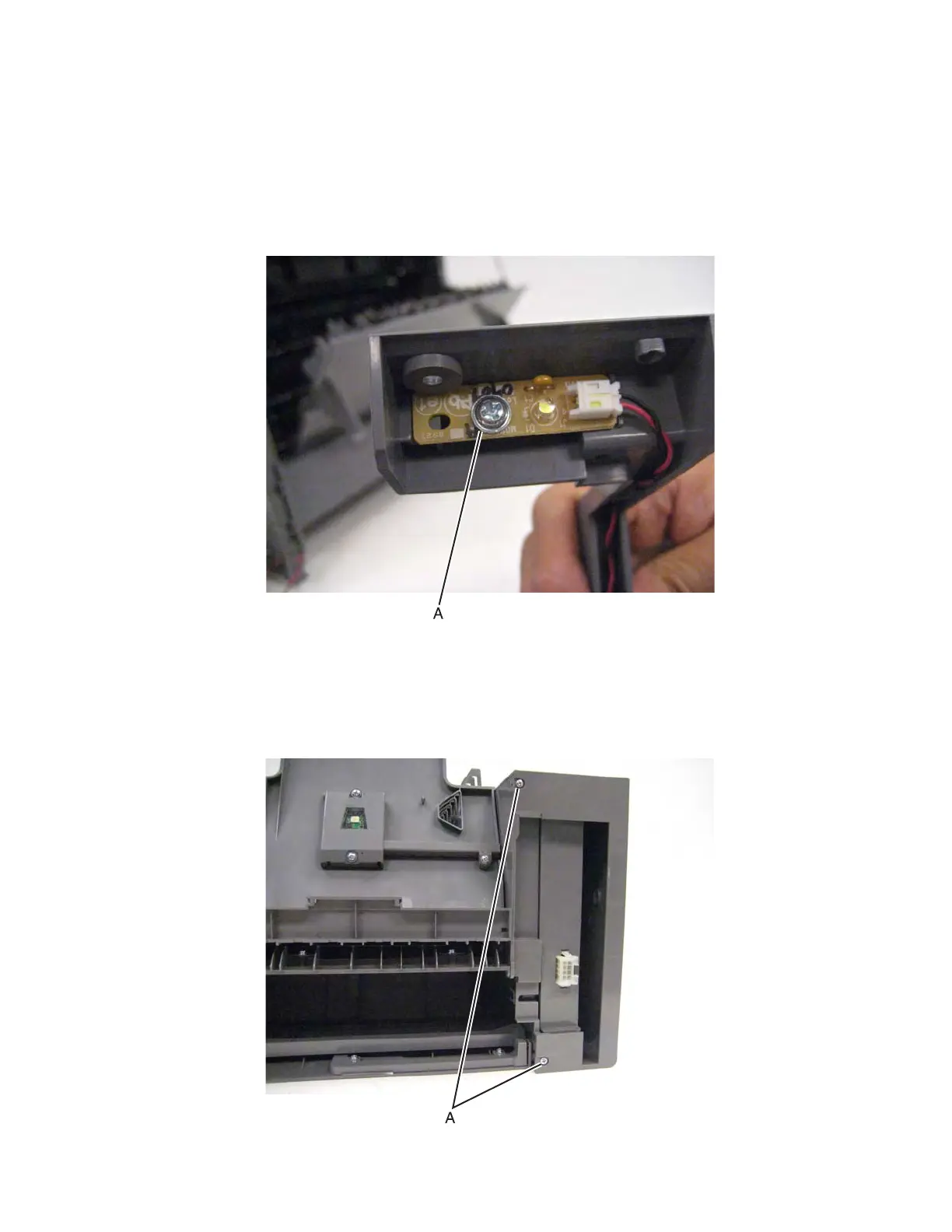 2. Remove two screws (A) from the bottom.