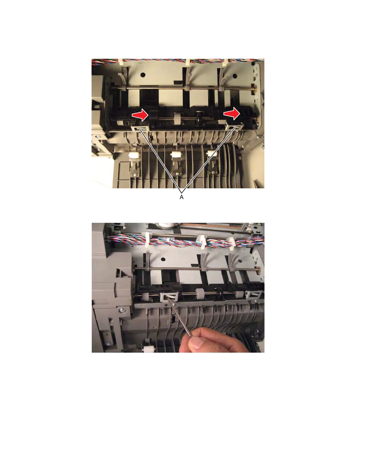 3. Remove the front cover. See“Finisher or stacker front cover removal” on page 4-248.