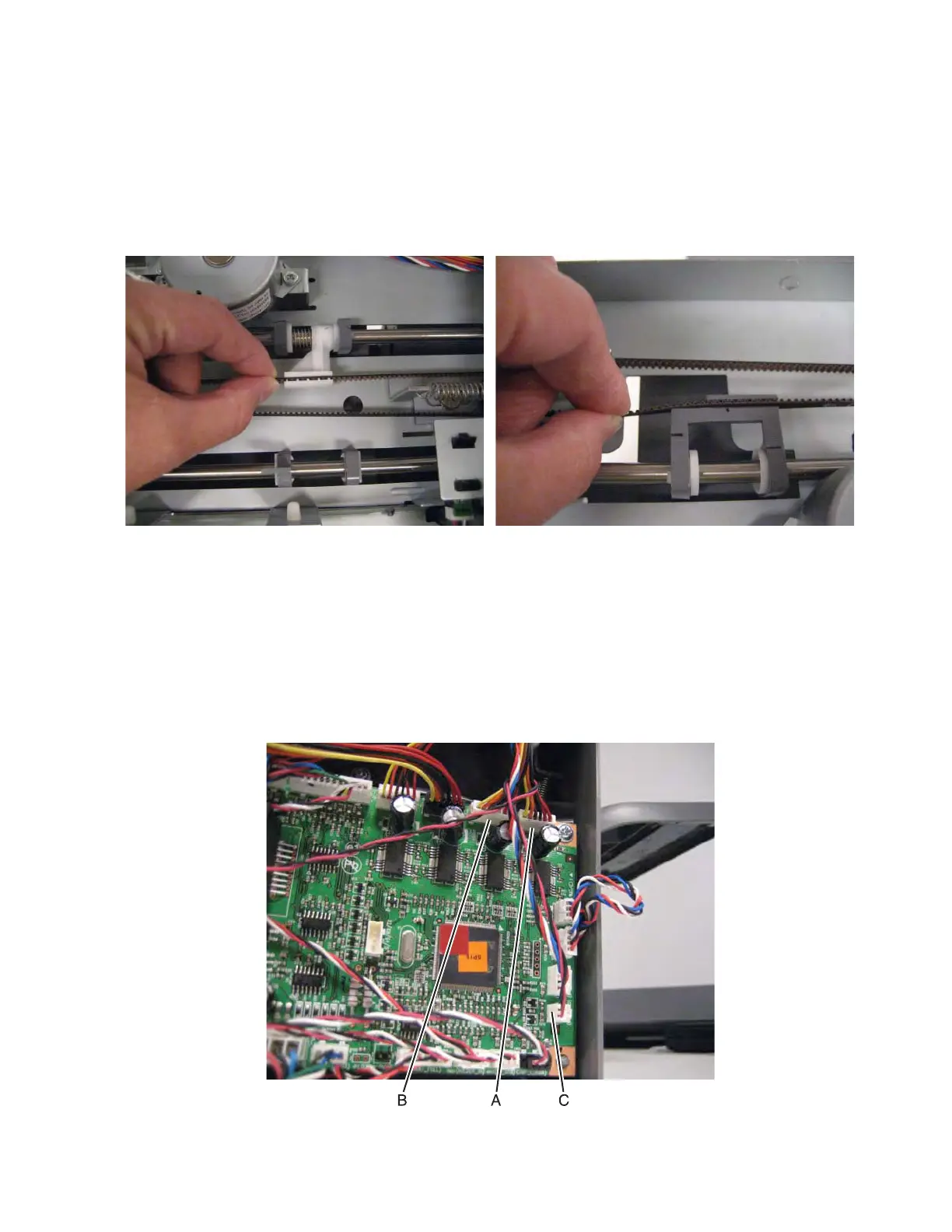 2. Remove the tamper drive motor from the belt you need to replace. See “Finisher or stacker tamper drive
