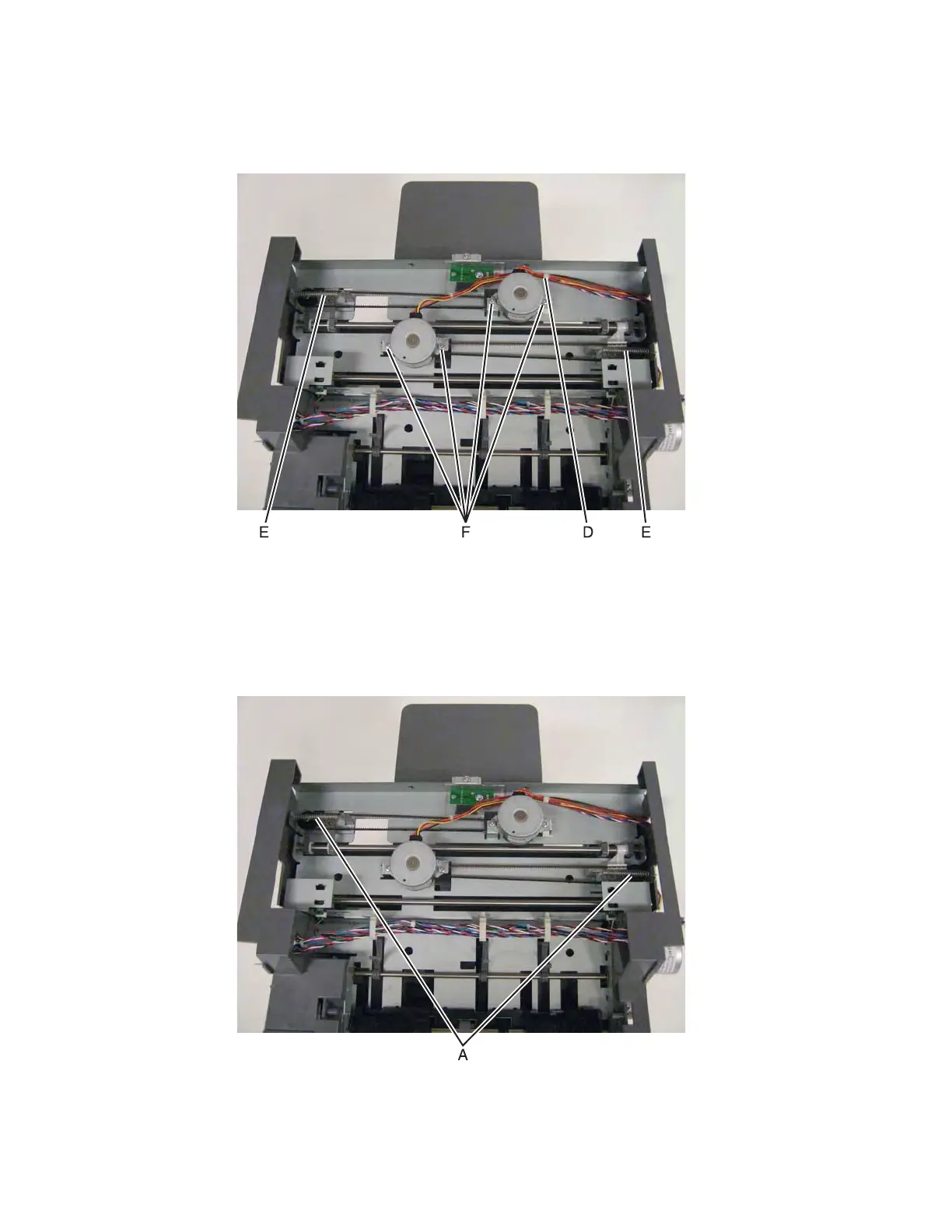 7. Remove the two screws (F) from the motor you are removing, and remove the motor assembly.