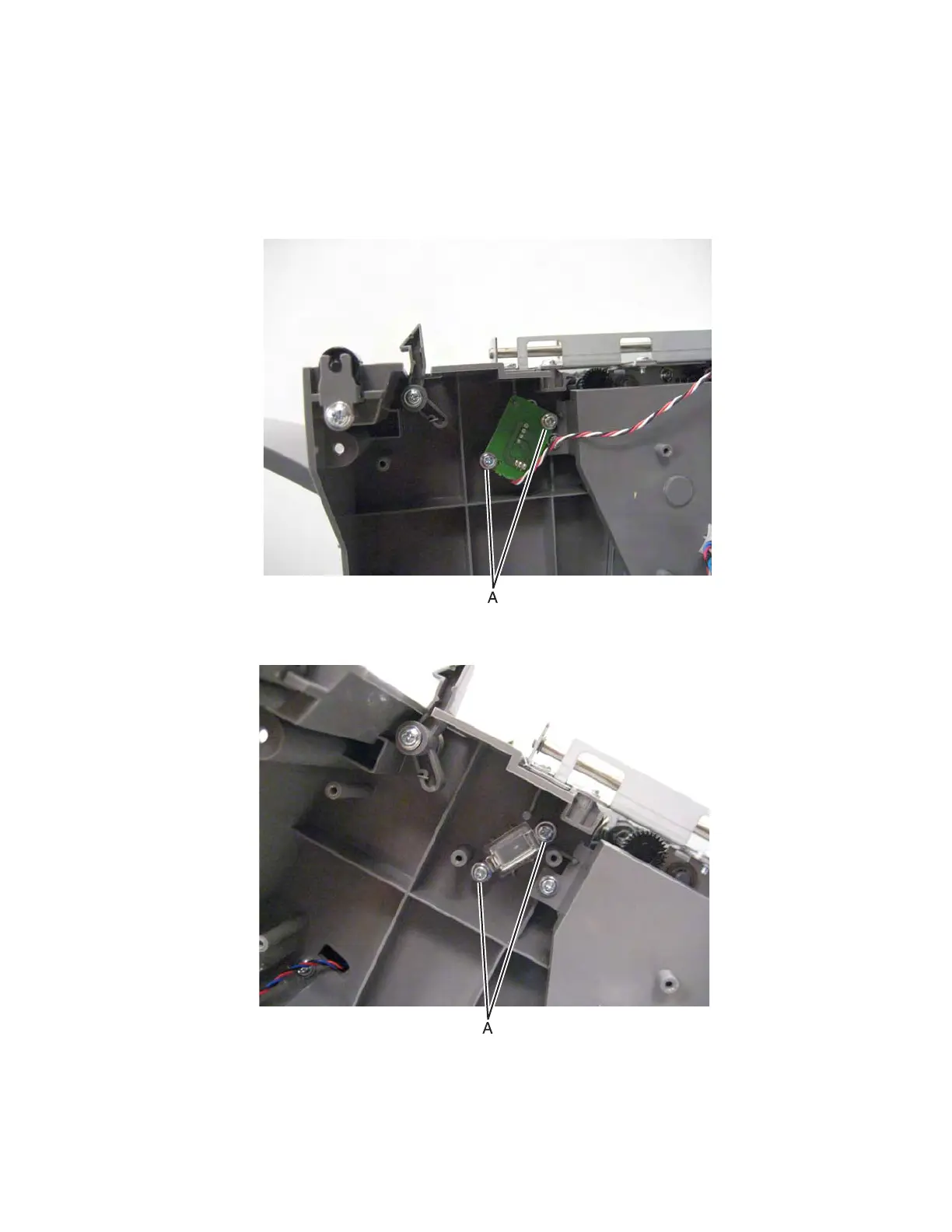 3. Remove the two screws (A), and then remove the sensor card.
