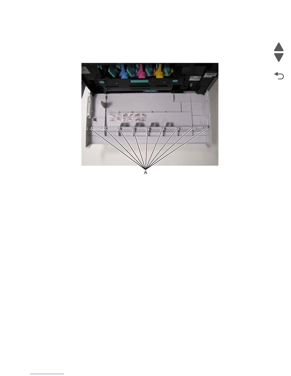 2. Remove the nine screws (A) securing the front logo cover to the front door.