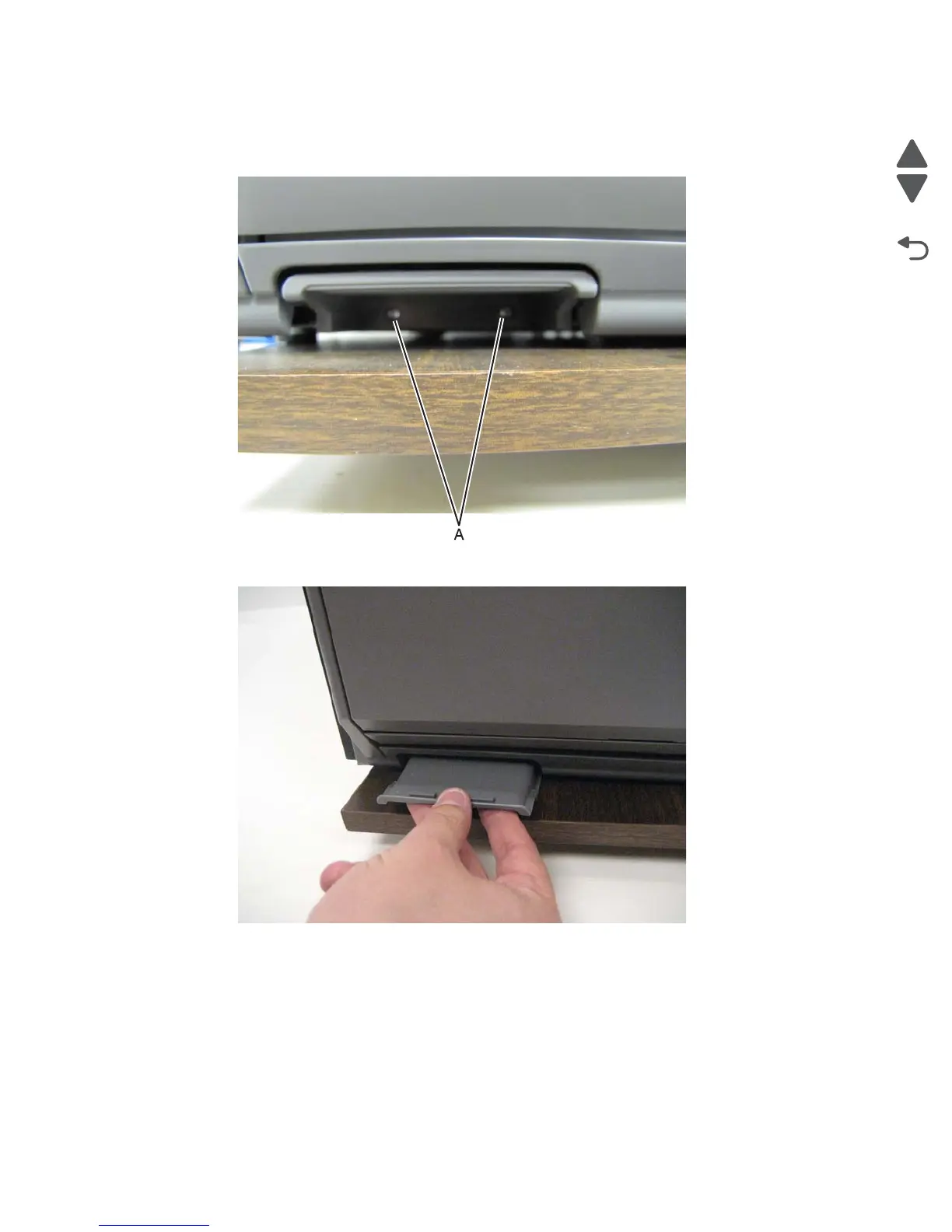 1. Remove the two screws (A) securing the handle covers to the printer frame.