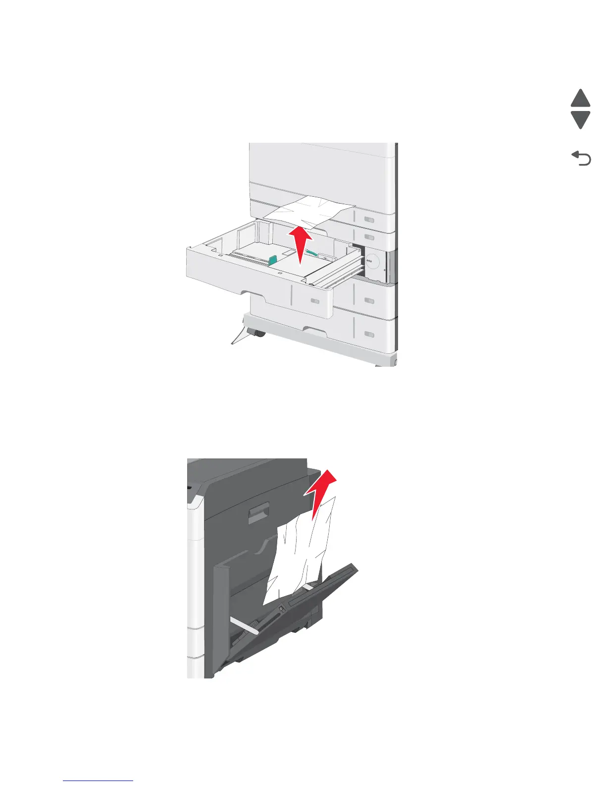 2. Open the affected tray, and remove the jammed pages.