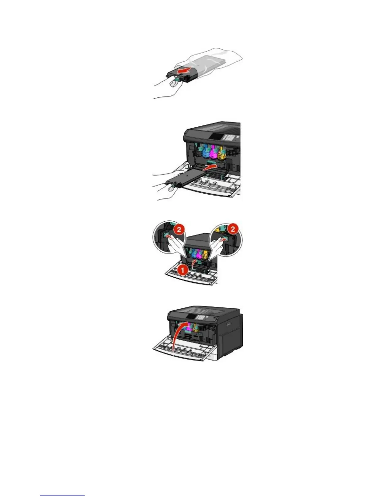 6 Insert the new waste toner bottle into the printer.