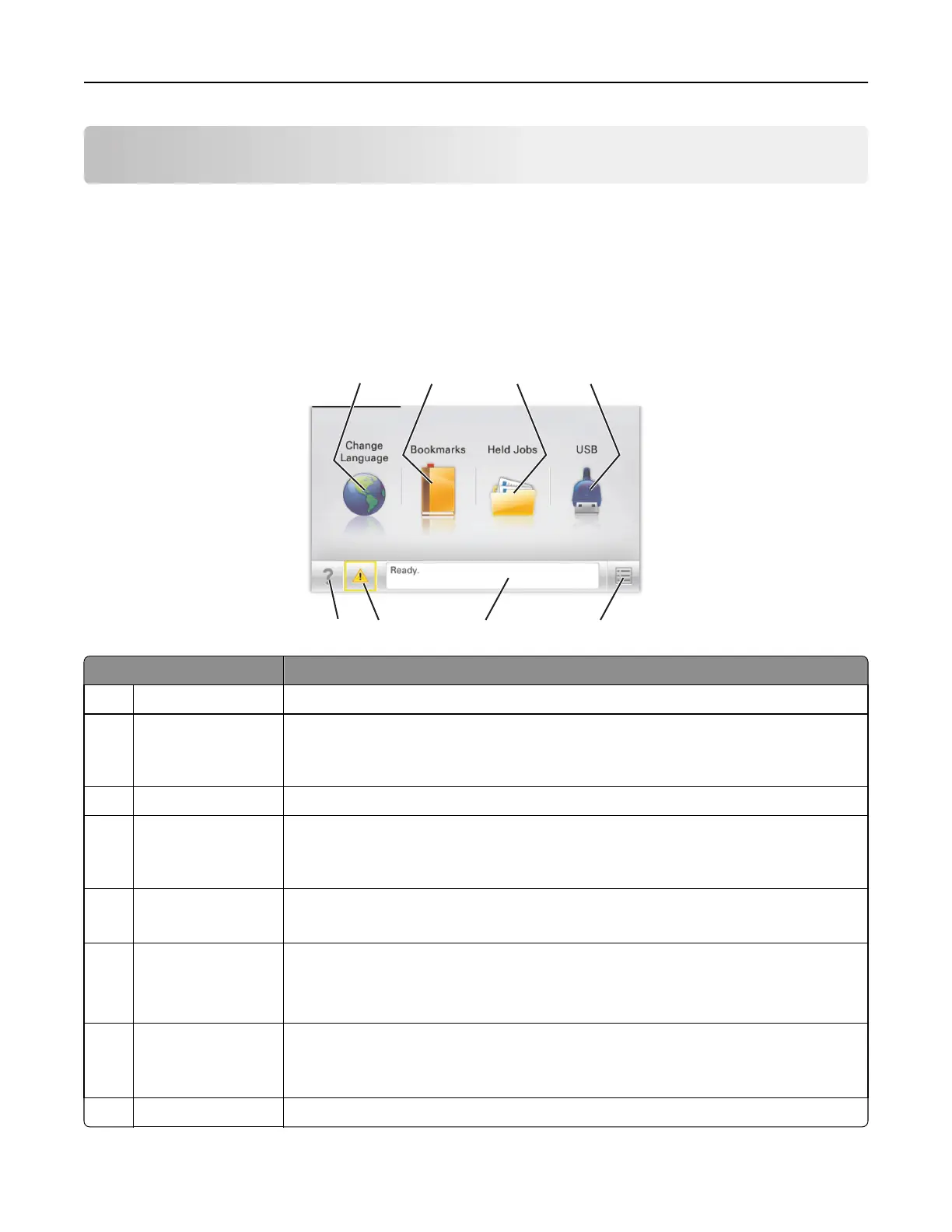 When the printer is turned on, the display shows a basic screen, referred to as the home screen. Use the home screen