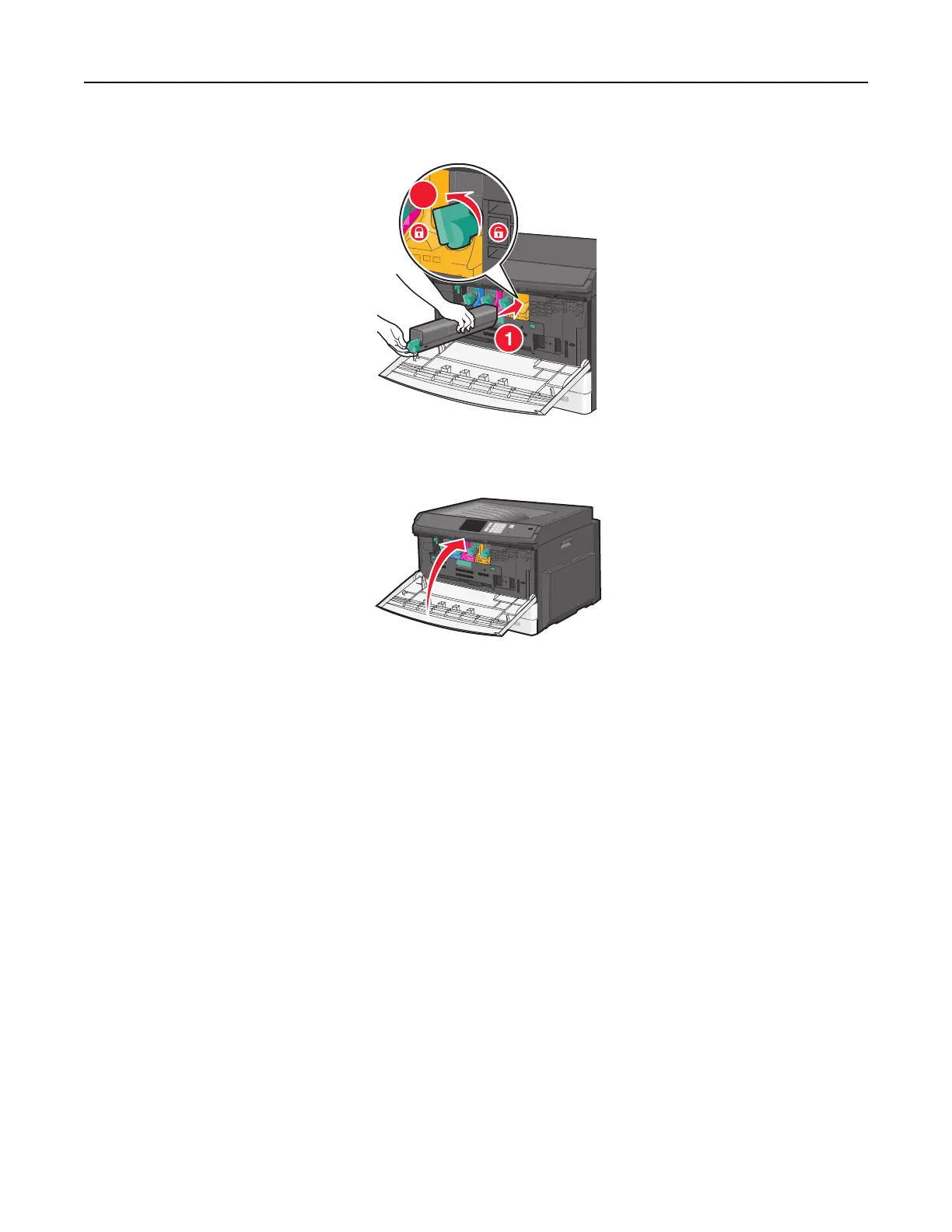 6 Insert the toner cartridge into the printer and then turn the toner lock lever to the left.