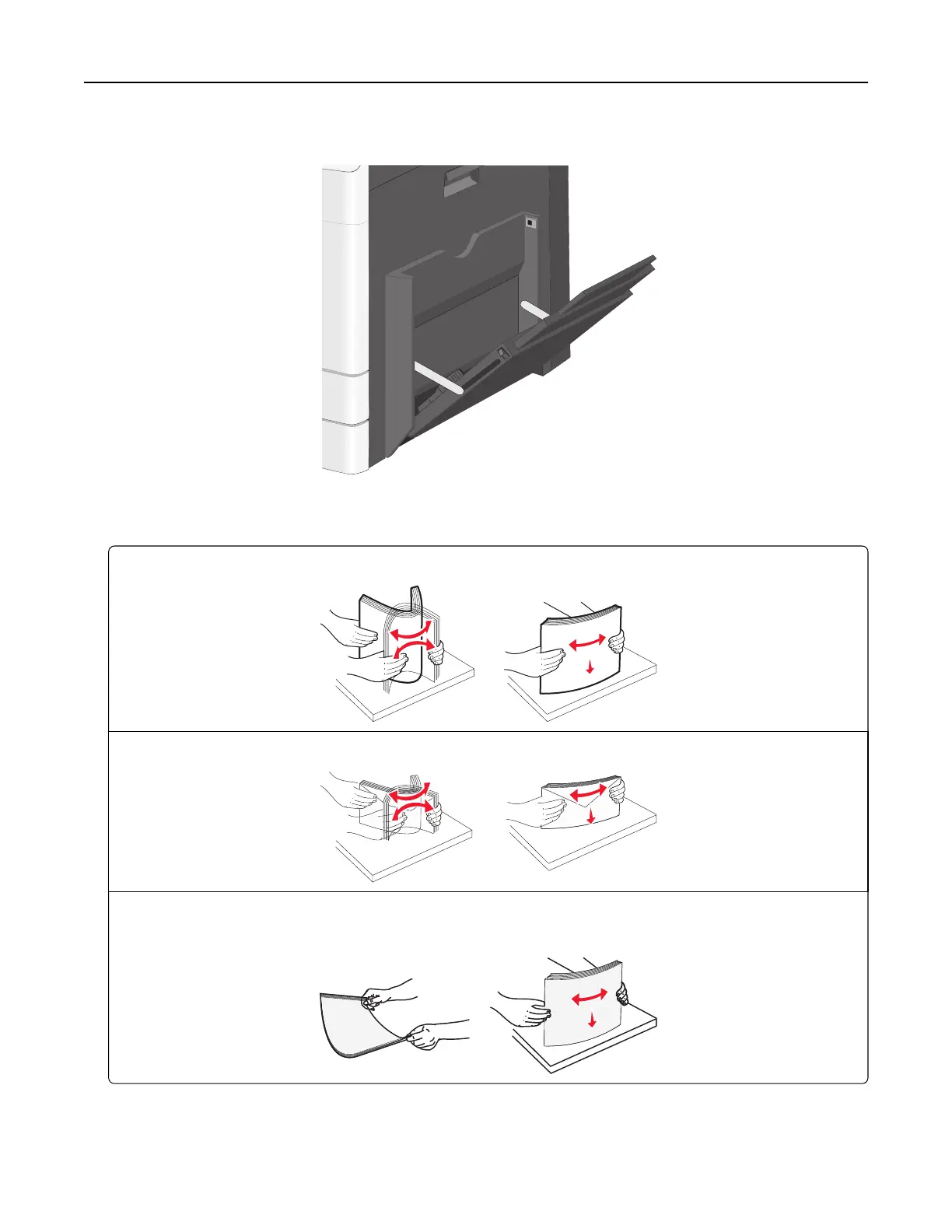 3 Flex the sheets of paper or specialty media back and forth to loosen them. Do not fold or crease them. Straighten