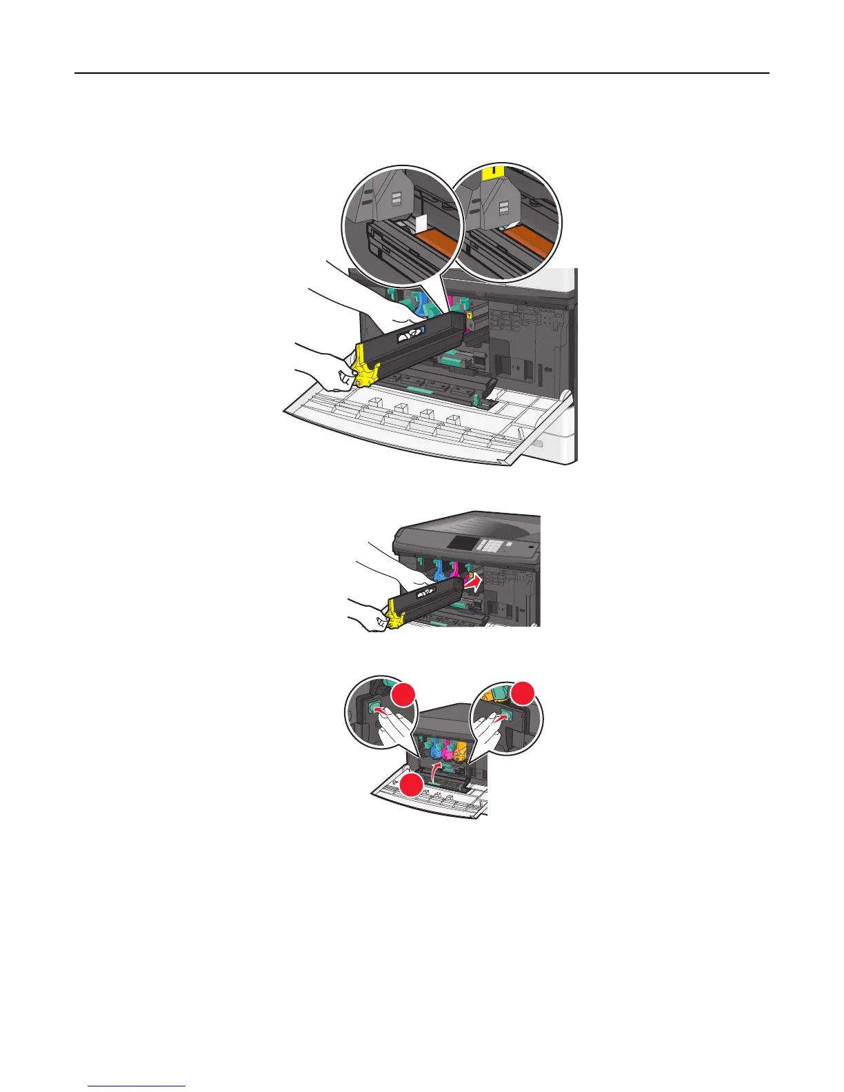5 Reinstall the imaging unit. When inserted into the printer, the LED wipe will rub across the row of LEDs, thus cleaning