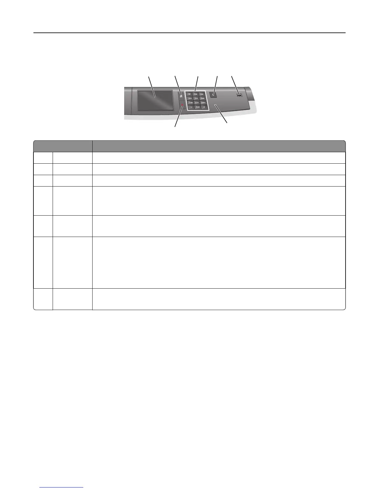 5 USB port Allows the user to connect a USB flash drive to the printer