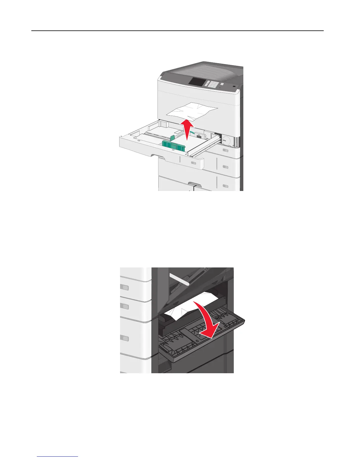 2 Open Tray 1, and then pull the jammed pages straight up and out.