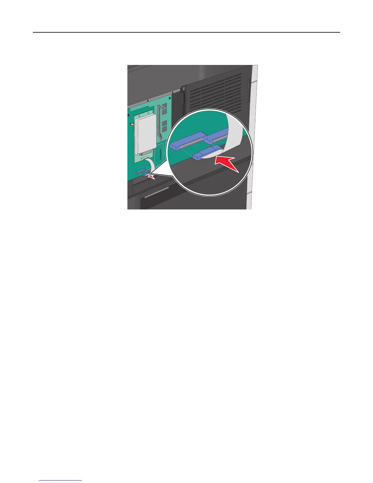 5 Insert the plug of the printer hard disk interface cable into the receptacle of the system board.