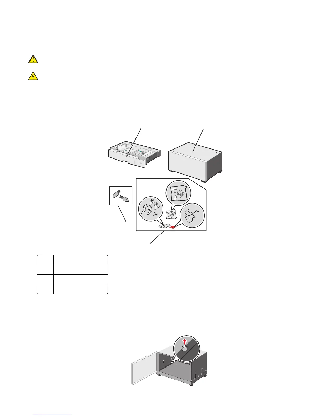 1 Unpack the optional tray and the printer stand, and then remove all packing material.