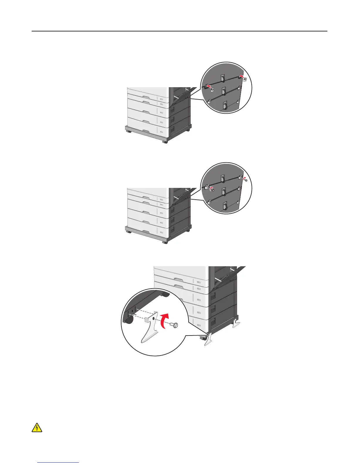 c Insert brackets on the slots located at the back of the printer and optional tray.