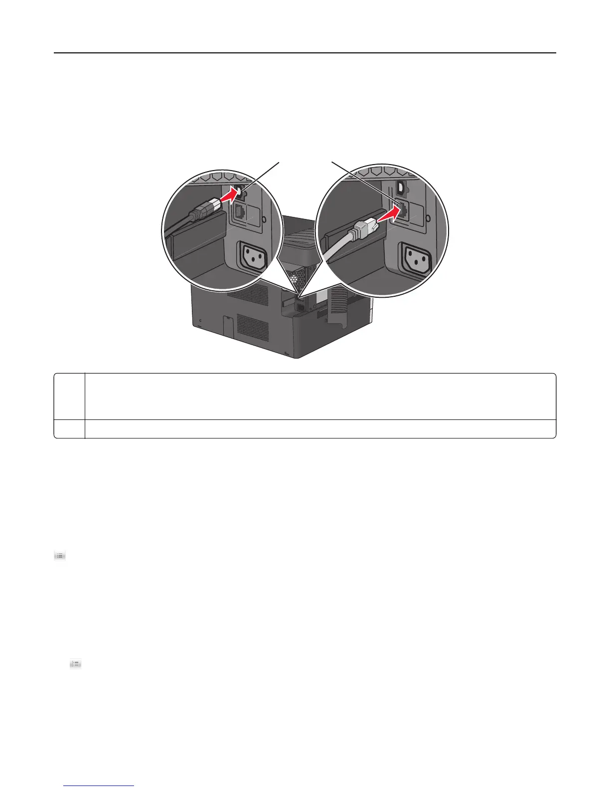 • The USB symbol on the cable with the USB symbol on the printer