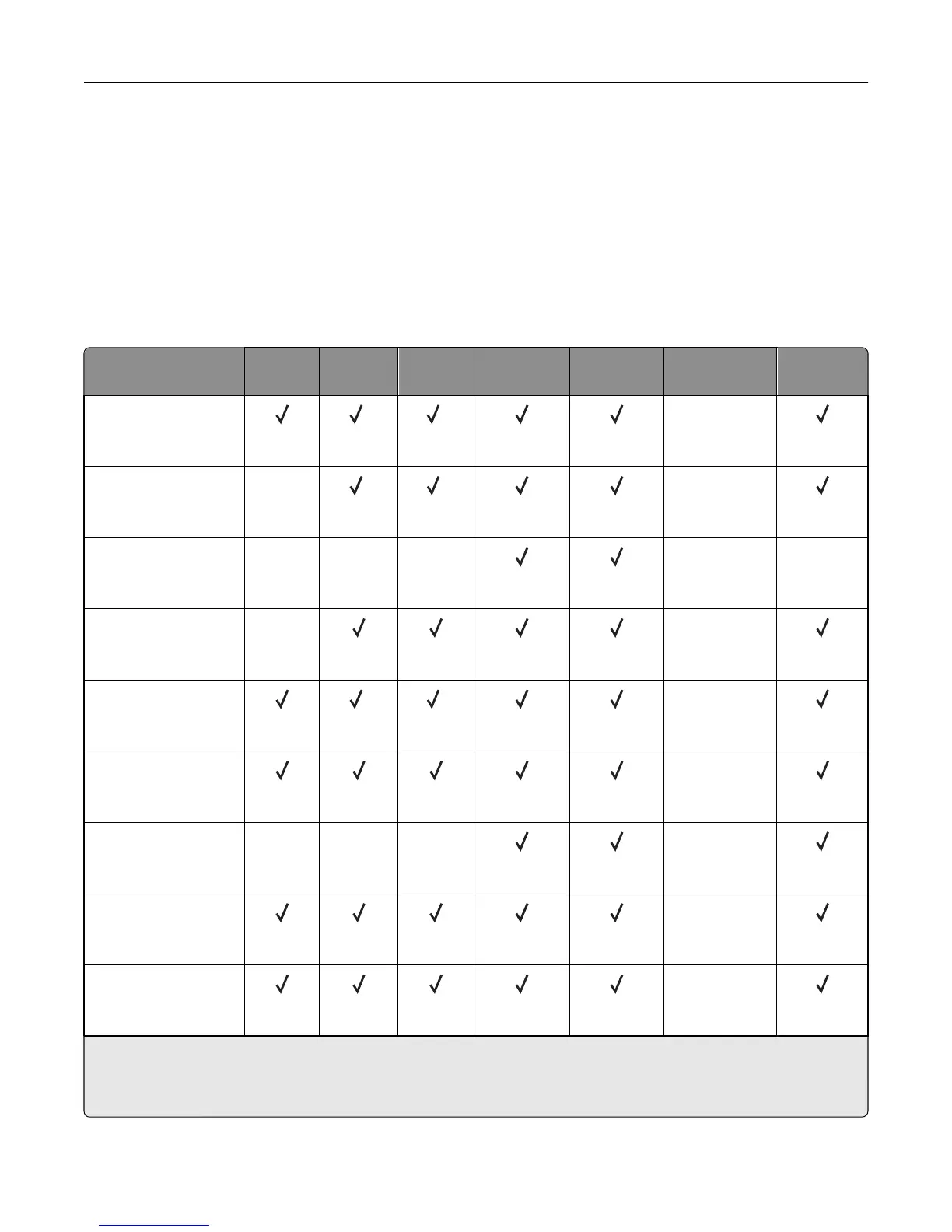 The following tables provide information on standard and optional paper sources and the types of paper they support.