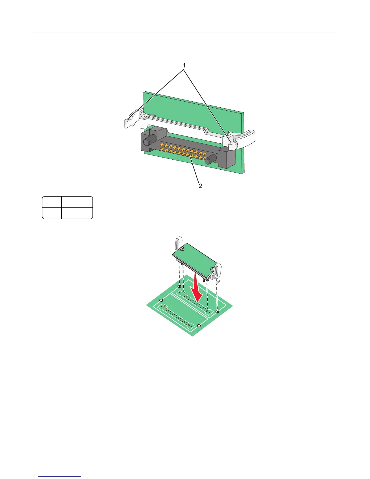 • The entire length of the connector on the card must touch and be flush against the system board.