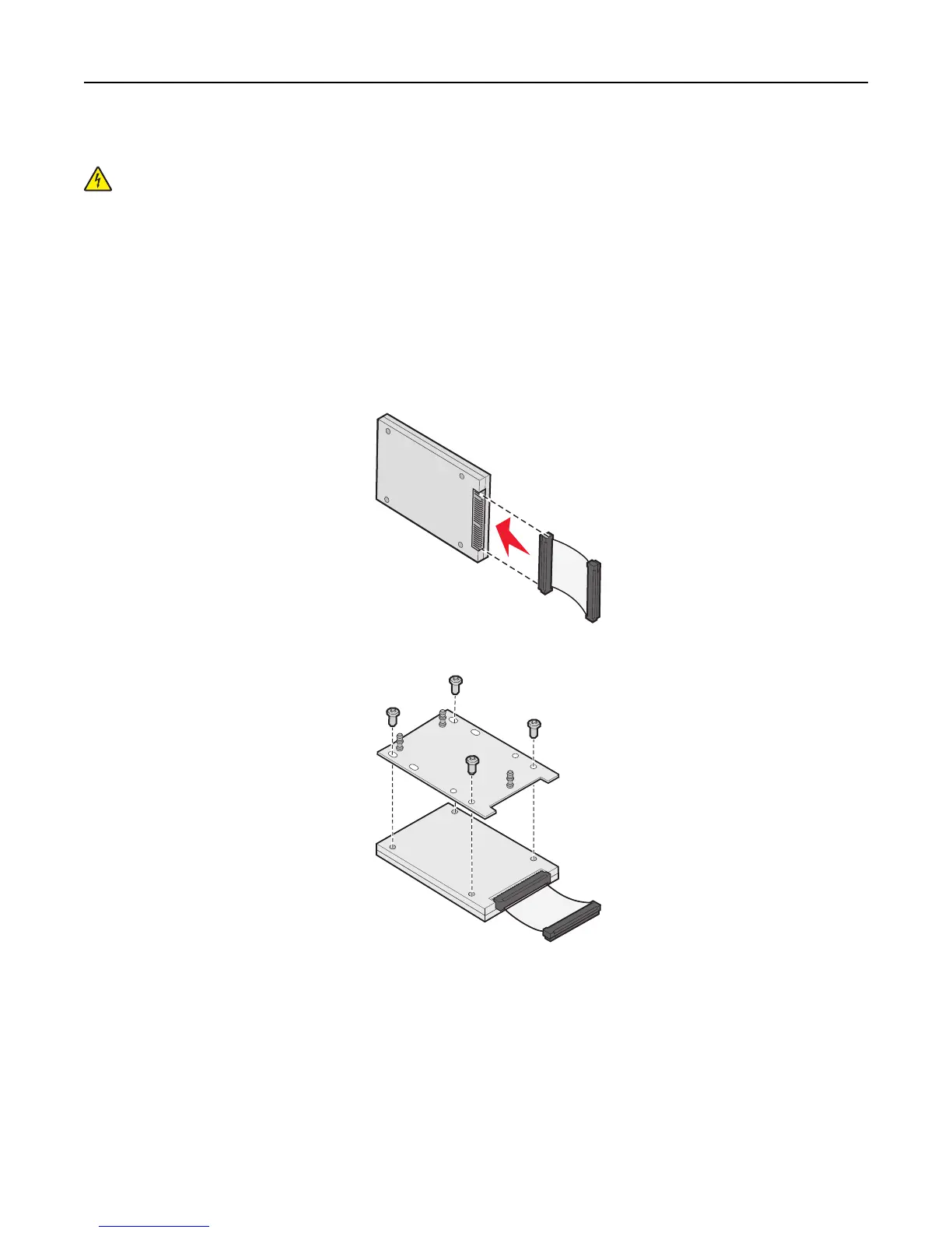 CAUTION—SHOCK HAZARD: If installing a printer hard disk after setting up the printer, turn the printer off, and