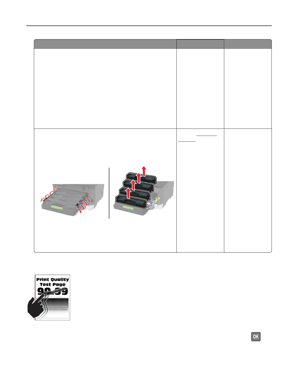 Note: Before solving the problem, print the Print Quality Test Pages. From the control panel, navigate to