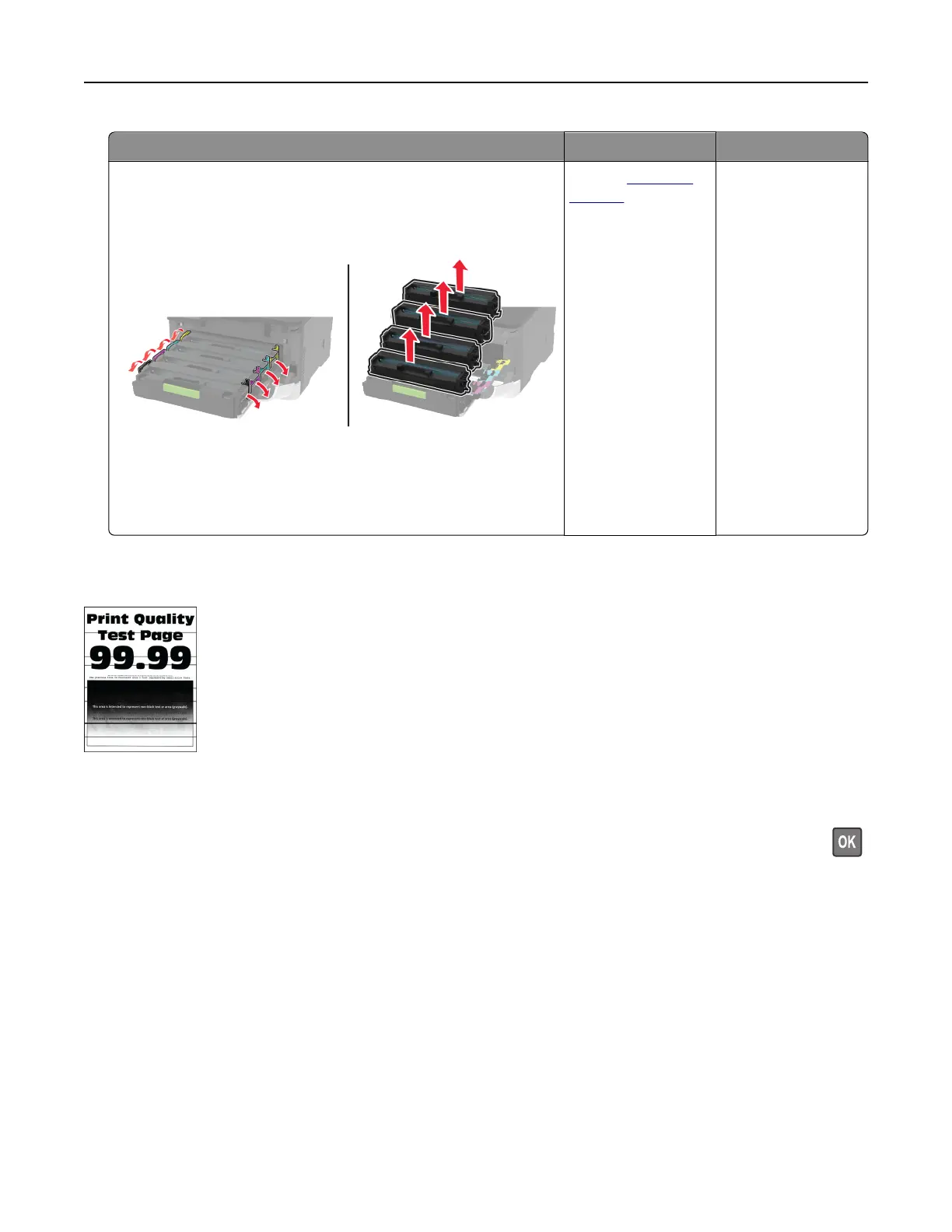 • Before solving the problem, print the Print Quality Test Pages. From the control panel, navigate to