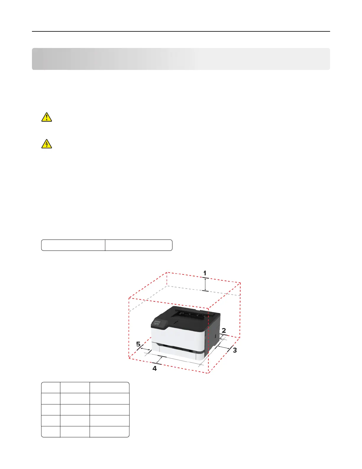 • Allow the following recommended amount of space around the printer for proper ventilation: