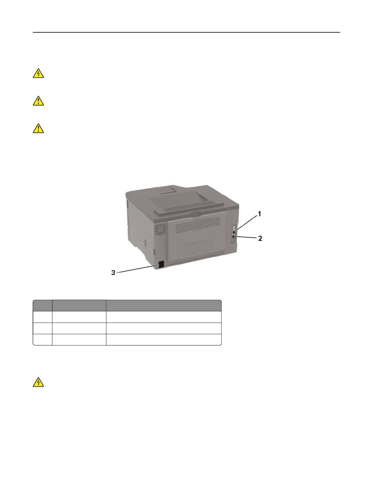 Warning—Potential Damage: To avoid loss of data or printer malfunction, do not touch the USB cable, any