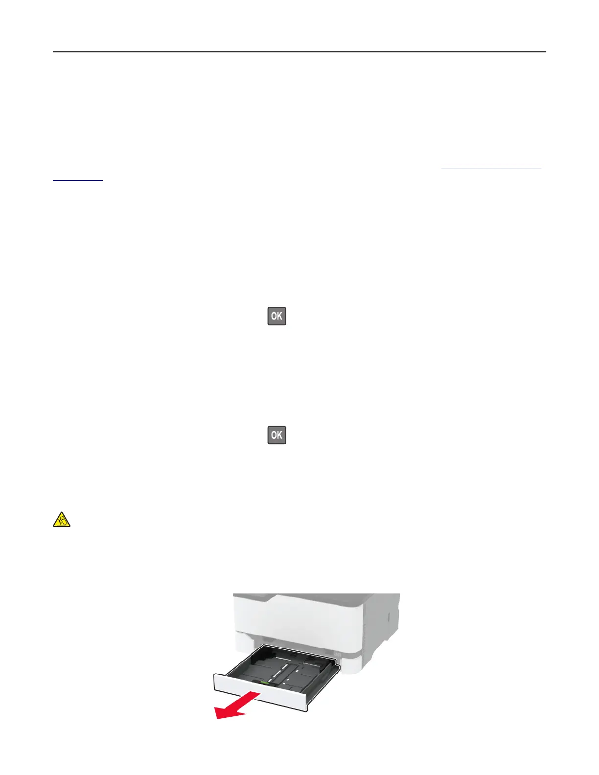 Note: To avoid paper jams, do not remove trays while the printer is busy.