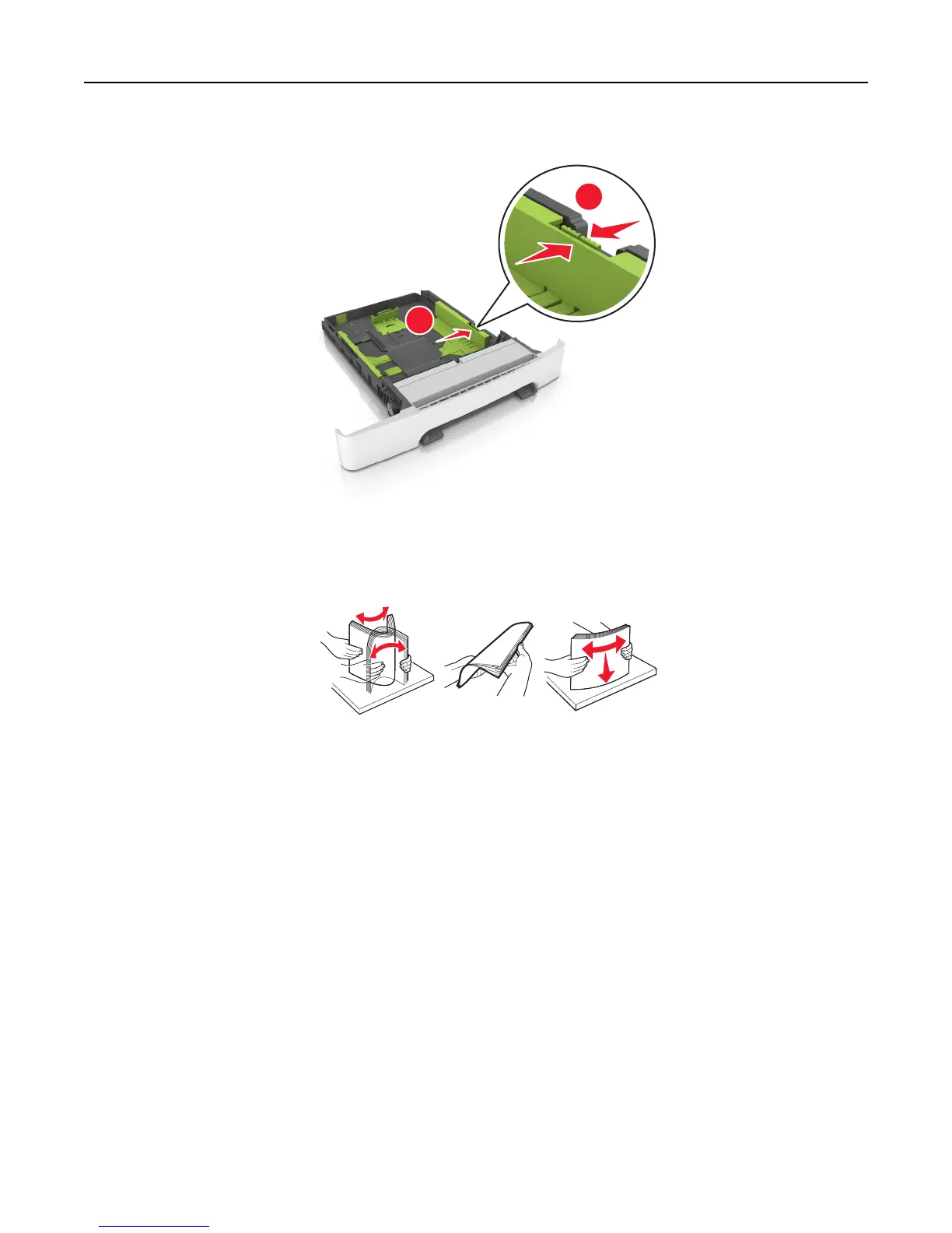 Note: Use the paper size indicators on the bottom of the tray to help position the guides.