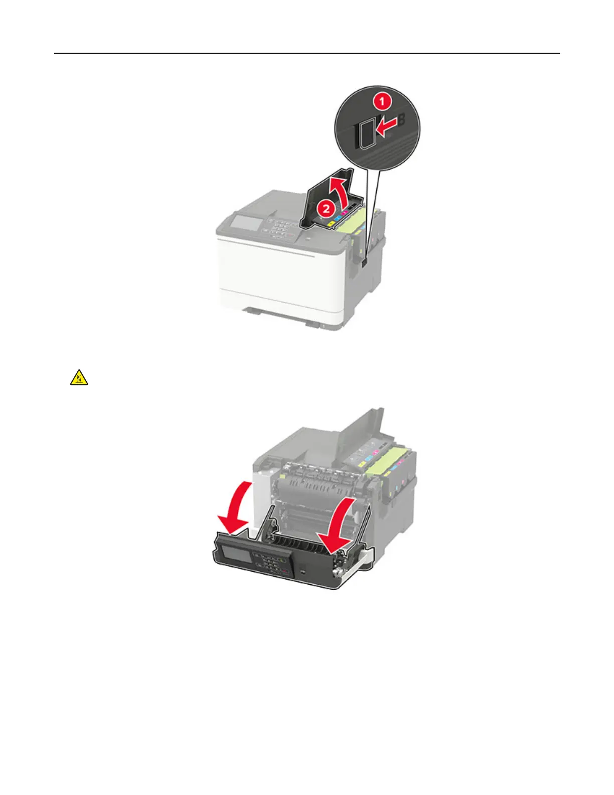 CAUTION—HOT SURFACE: The inside of the printer might be hot. To reduce the risk of injury from a