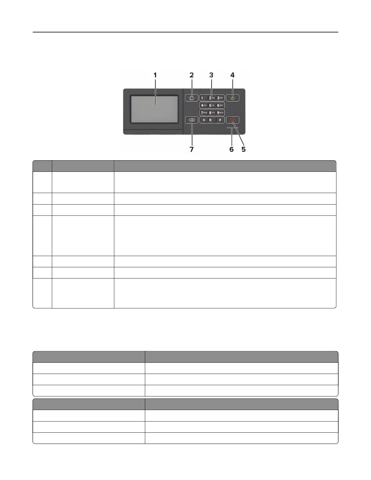 5 Stop or Cancel button Stop the current printer task.