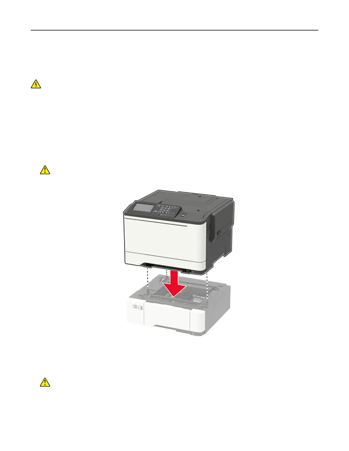 4 Align the printer with the optional tray, and then lower the printer into place.