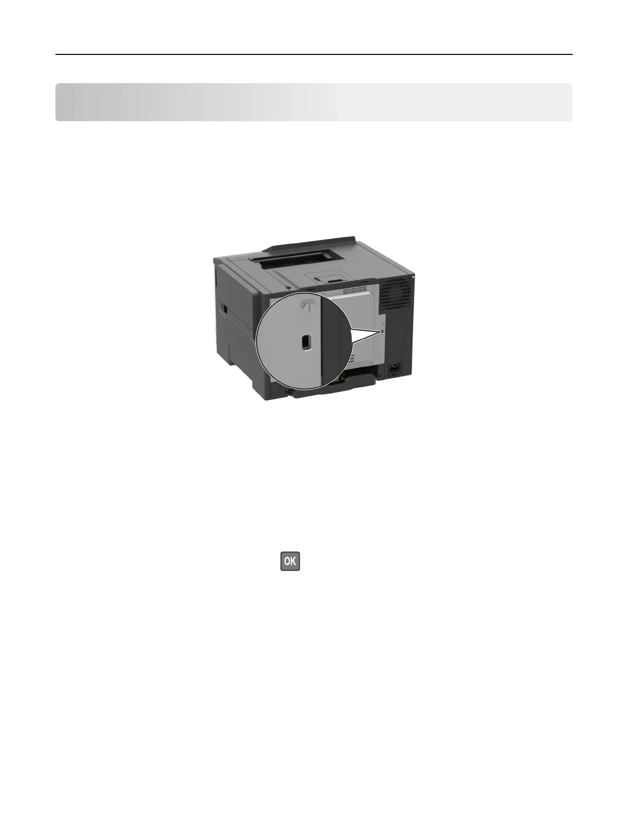 The printer is equipped with a security lock feature. Attach a security lock compatible with most laptop