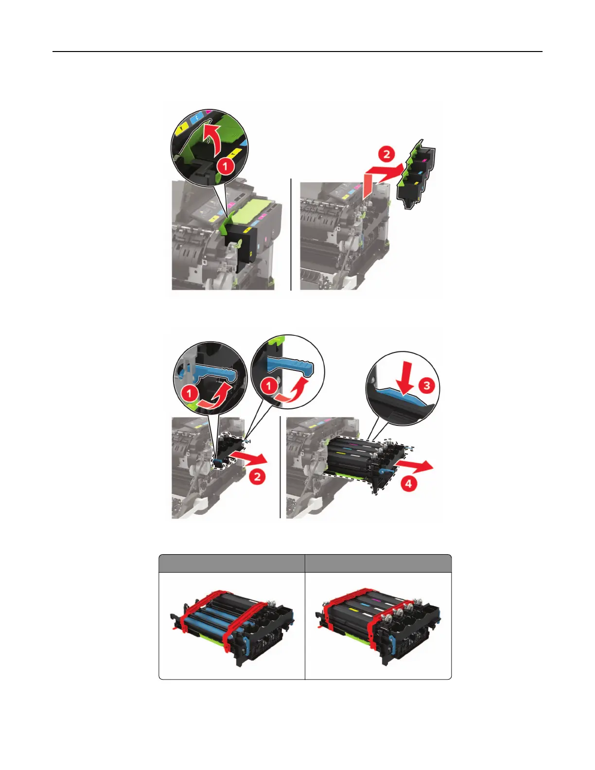 5 Remove the toner cartridges.