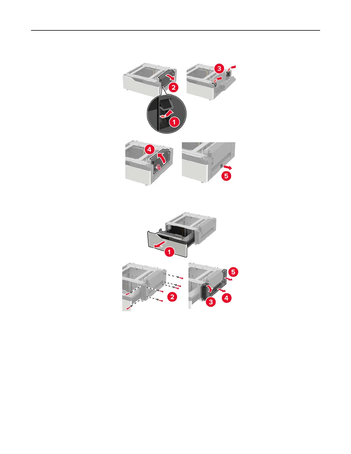 11 Open the tray, and then remove the mounting bracket and rail covers.