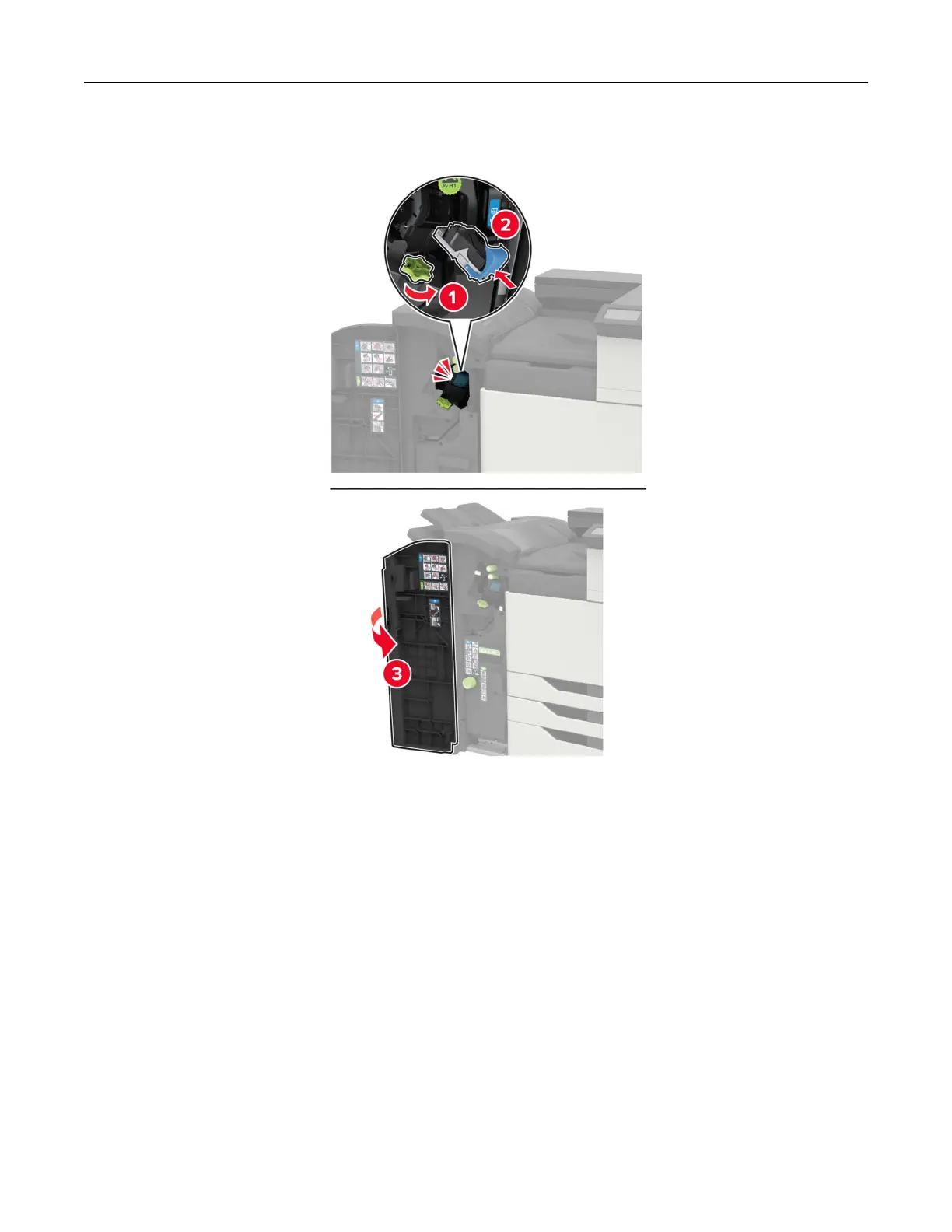 9 Insert the staple cartridge into the finisher until it clicks into place.