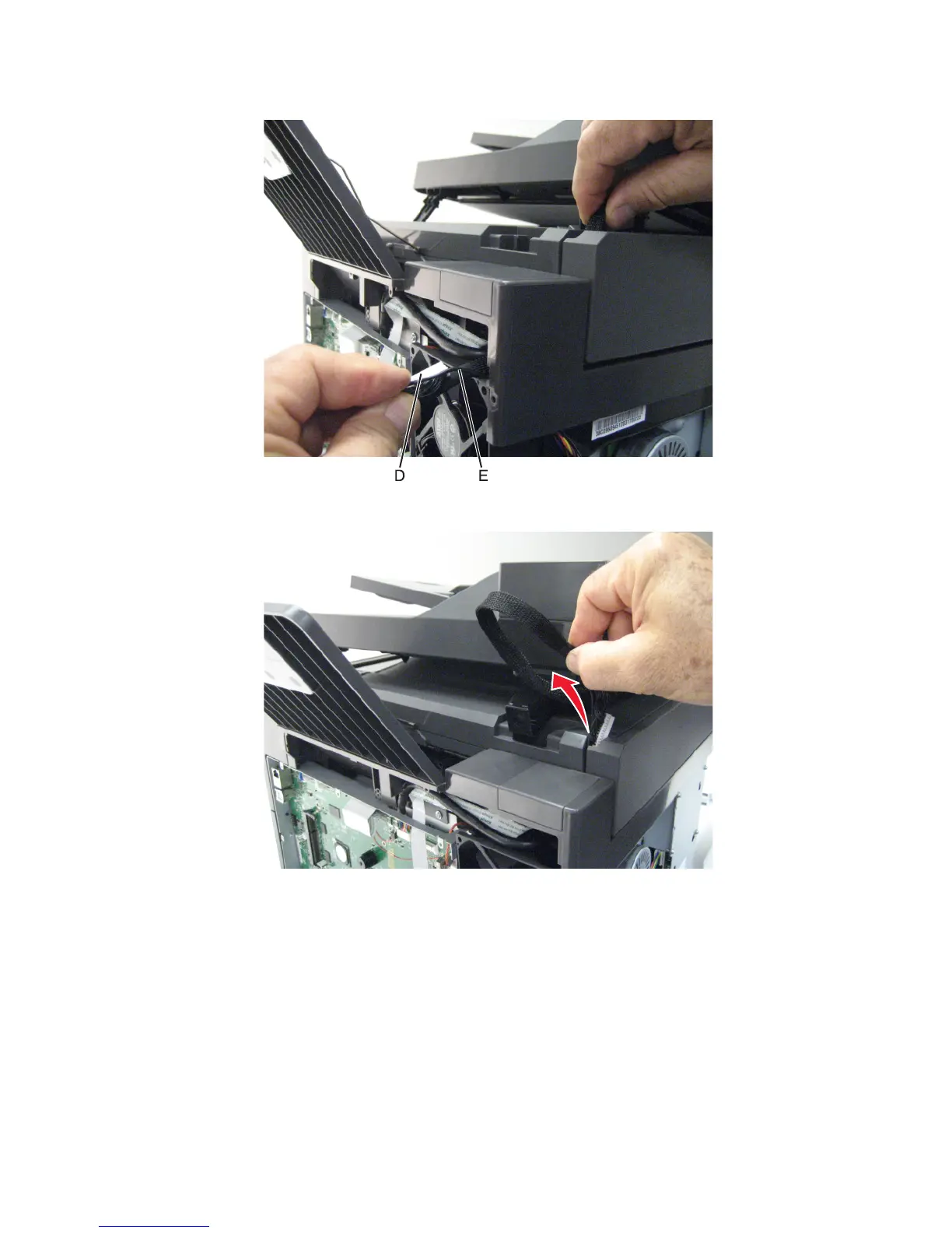 7 Pull the cable through the opening in the top of the printer.