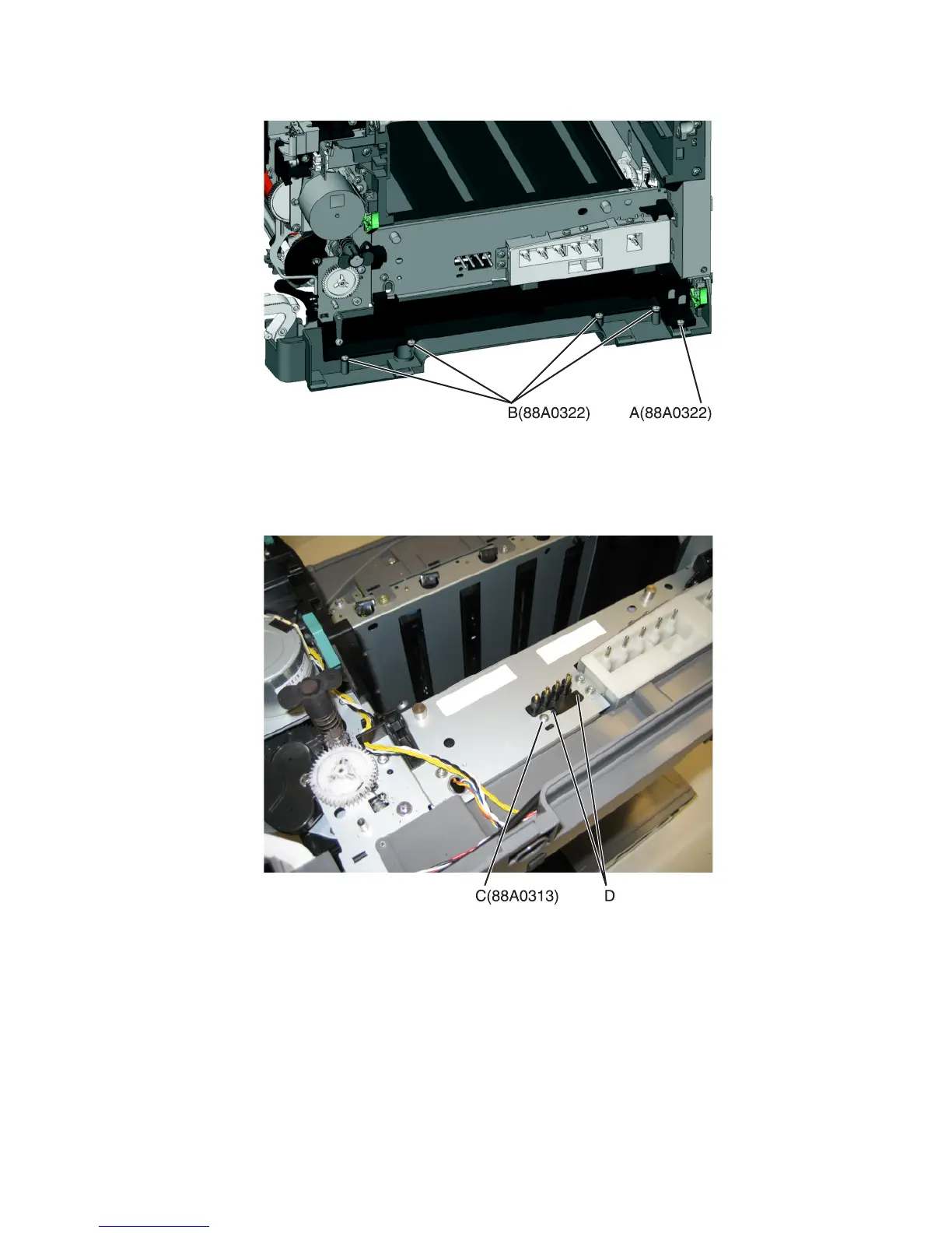 8 Lay the printer on its left side, and remove the screw (C) securing the spring contacts.