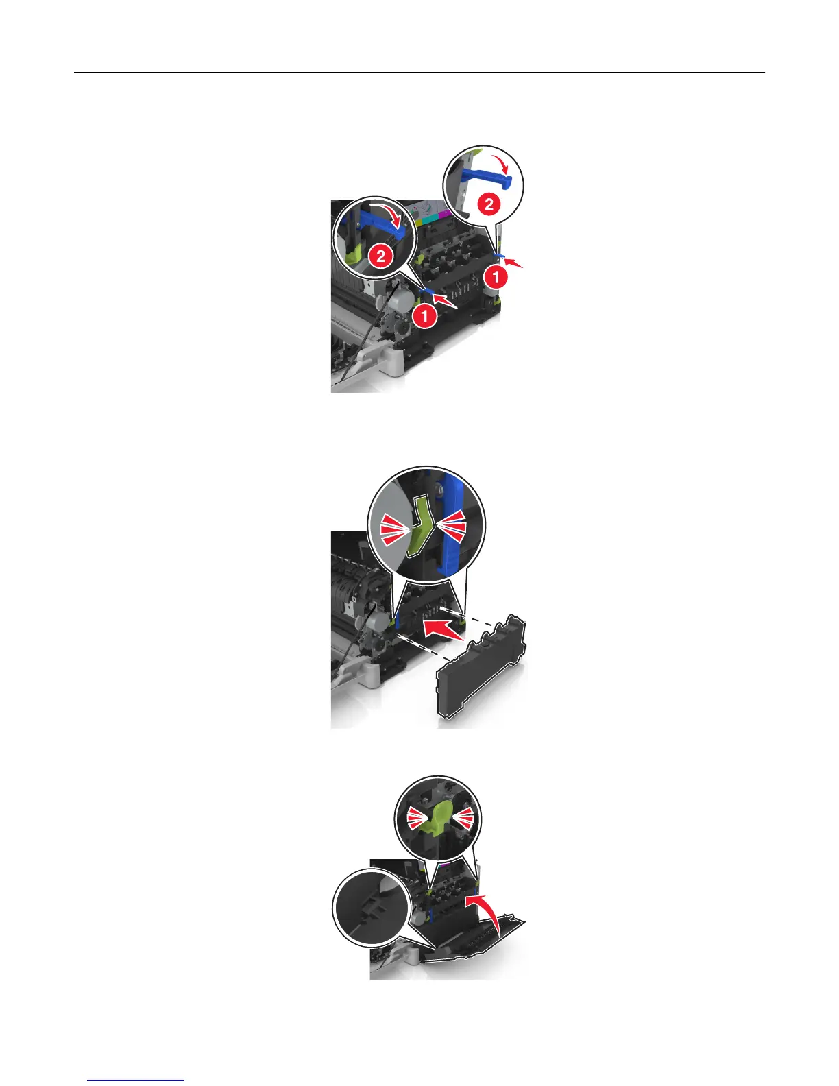 15 Gently but firmly push the blue levers down until the imaging kit fits into place.